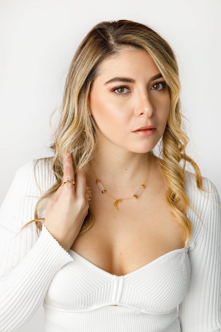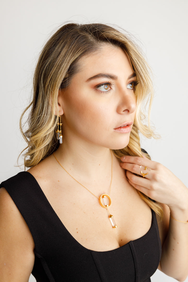 Para ella estar en contacto con cristales y piedras preciosas ha tenido gran impacto en su vida por toda la energía y beneficios que cuentan. Razón por lo que la diseñadora ha decidido implementar estos cristales y piedras en sus colecciones para dar otro significado a las piezas además de diseño.